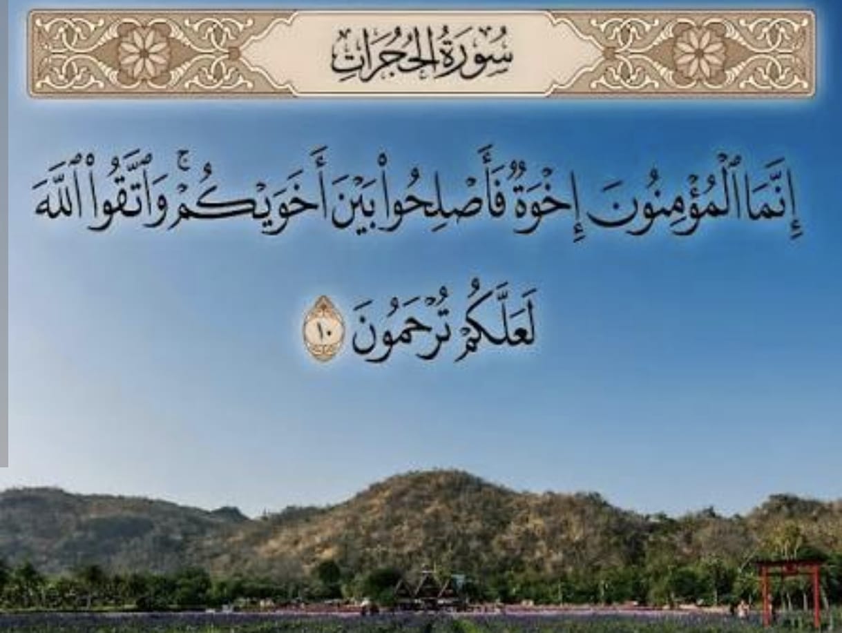 ”إِنَّمَا الْمُؤْمِنُونَ إِخْوَةٌ فَأَصْلِحُوا بَيْنَ أَخَوَيْكُمْ ۚ وَاتَّقُوا اللَّهَ لَعَلَّكُمْ تُرْحَمُونَ”